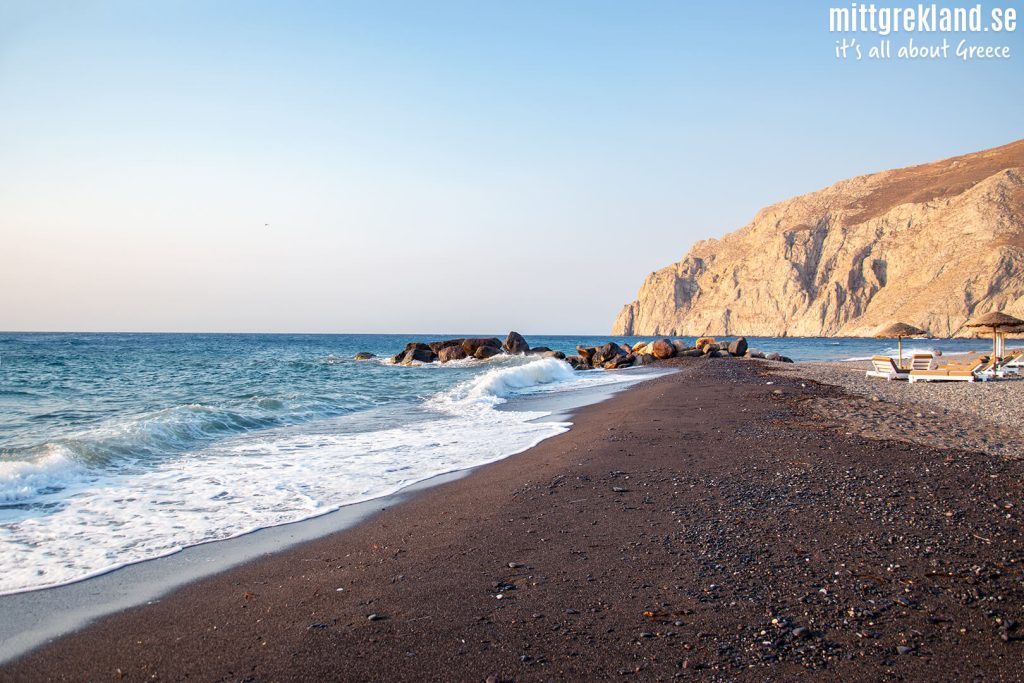 Stränder på Santorini som har svart lavasand är bland annat Kamari Beach, Perissa Beach, Perivolos Beach.