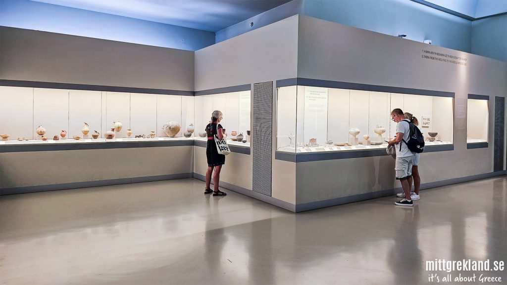Museet består av två plan med mindre föremål som keramik och verktyg på plan ett medan plan två visar upp tänkbara rum och väggmålningar. Du kan läsa mer om den förhistoriska bosättningen Akrotiri längre ner i artikeln.