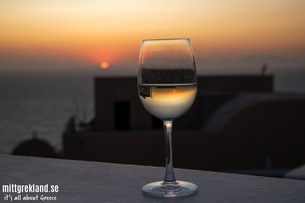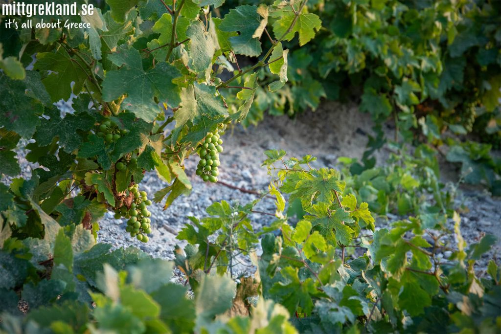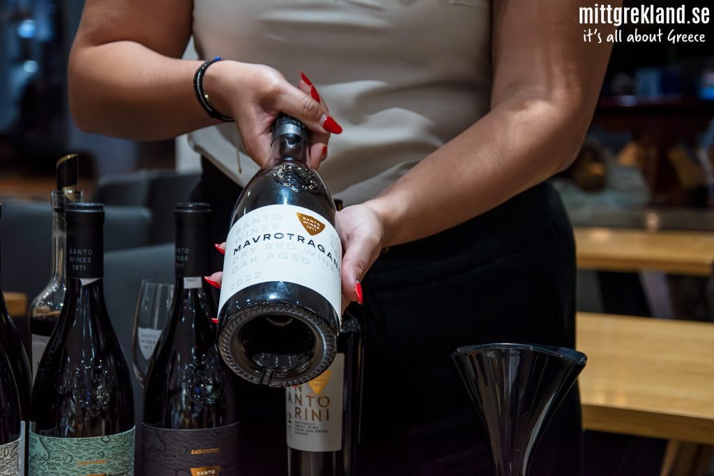 Under vinprovningen fick vi prova totalt sex viner där vi startade med Santo Sparkling White Wine (Brut), Santorini Assyrtiko, Santorini Nykteri, Santorini Assyrtiko Grande Reserve, Mavrotragano (rött) samt Vinsanto (dessertvin). Min favorit blev Santorini Nykteri som till största delen består av Assyrtiko men har även delar av druvorna Athiri (10%) och Aidani (5%).
