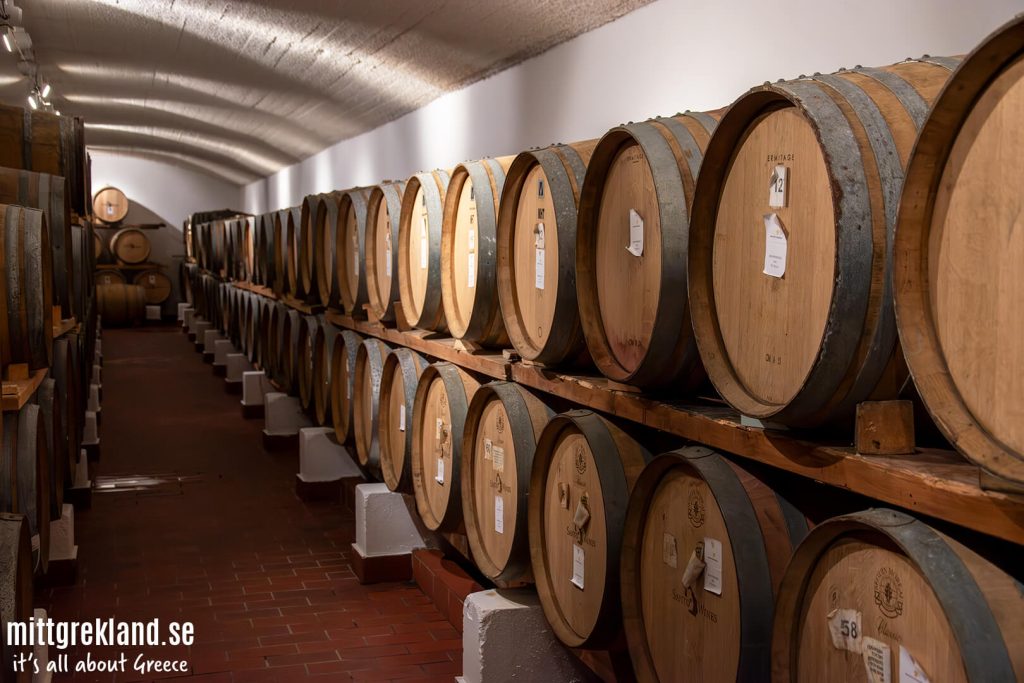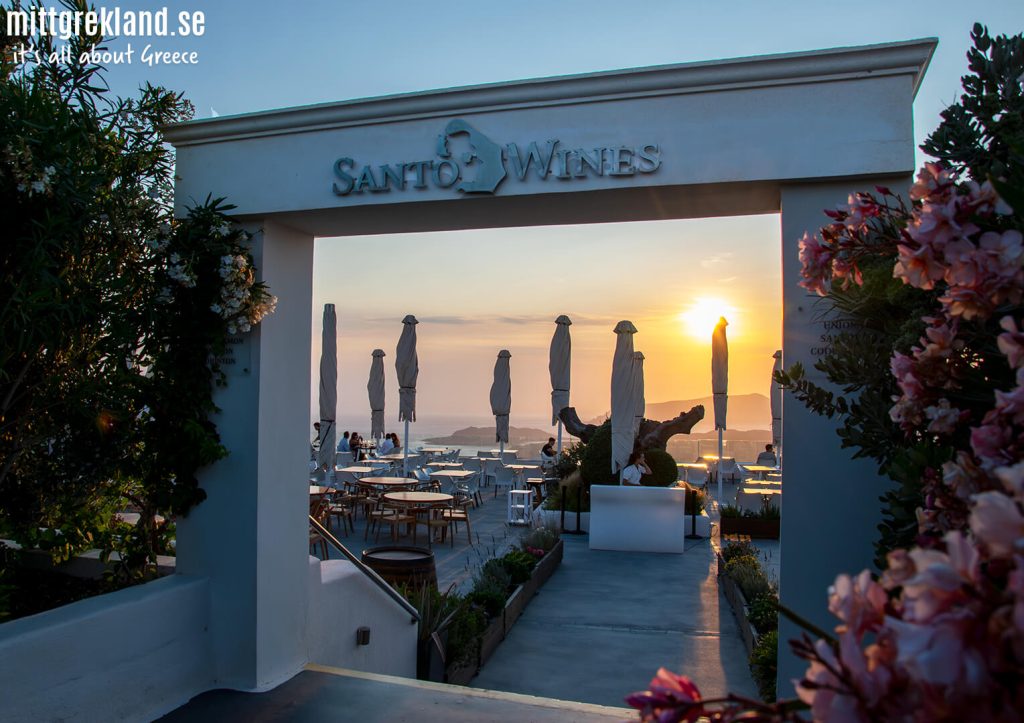 Jag hade förmånen att delta på en vinprovning på Santo Wines Wine Tourism Center intill byn Pyrgos, högt belägen med en njutbar utsikt över kalderan och solnedgången. Intill centret ligger vintillverkningen och vingården som är byggd i olika nivåer, precis som terrasseringarna i jordbruket, vilket innebär att Santo Wines använder sig av en gravitationsteknik istället för pumpar när de transporterar, först musten och sedan vinet till de olika kärlen i vintillverkningen.