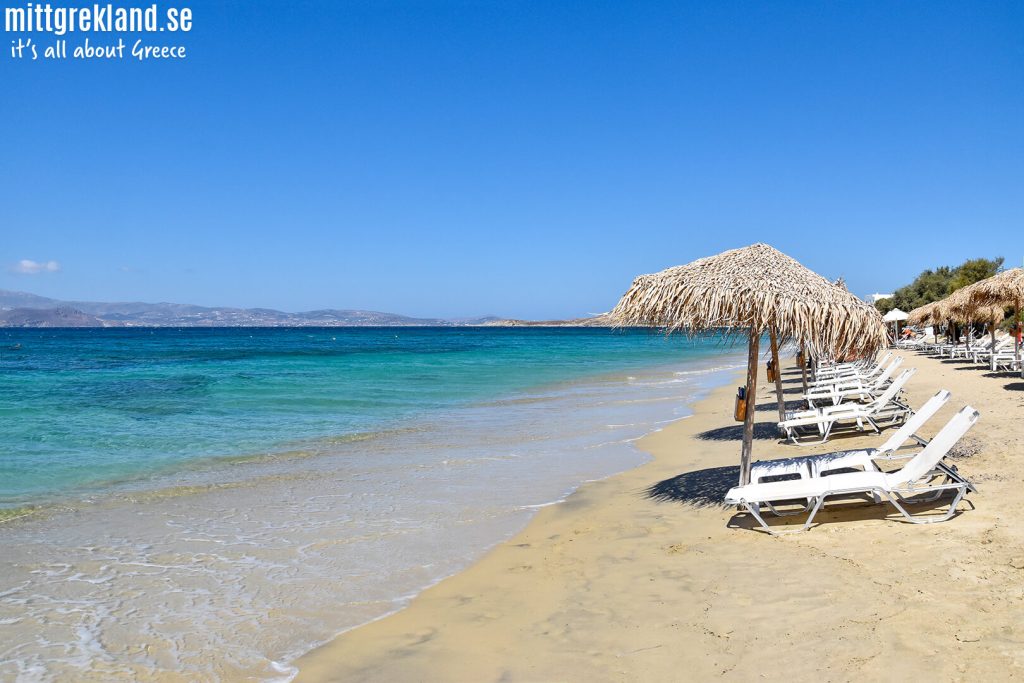 Stränderna på Naxos är bland de bästa i Medelhavet och de långa, vita, fina sandstränderna hittar du framför allt på Naxos västkust, det vill säga den sida som vetter mot grannön Paros. Vattnet är turkost och kristallklart och ger både bra snorkelmöjligheter och bra vind- eller kitesurfingtillfällen.