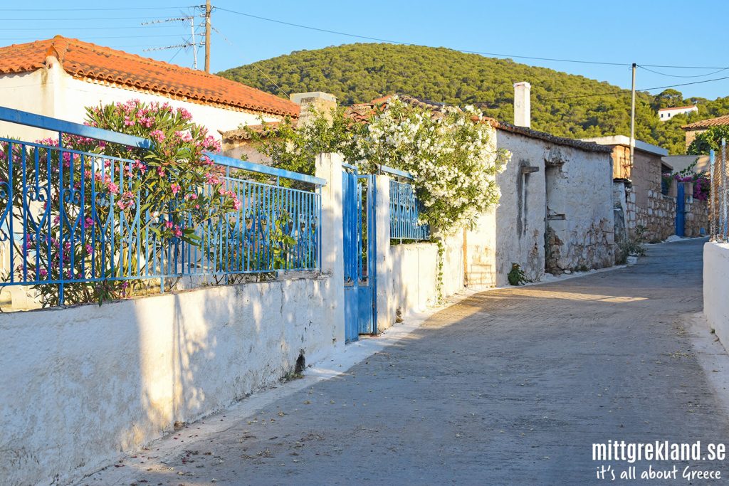 Jag brukar bo i byn Megalochori som är en av två hamnbyar på Agistri. Här är det avskalat och romantiskt ”ruffigt” på något sätt. Jag trivs som fisken i vattnet och det tar inte särskilt lång tid att promenera till den andra hamnbyn, Skala, där merparten av turisterna huserar under sin vistelse på Agistri.