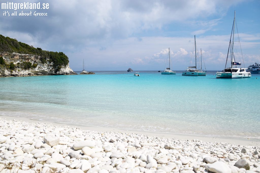 Antipaxos ligger strax intill sin storasyster Paxos och bjuder i första hand på ett helt magiskt vatten. Det är så turkosblått att det nästan sticker i ögonen. För de allra flesta är Antipaxos en ö som man besöker över dagen då det finns få boenden och tavernor. Under lågsäsong bor enbart runt 70 personer på Antipaxos. Under högsäsong lägger många segelbåtar till utanför de vackra stränderna och delar av ön kan upplevas som ganska välbesökt.