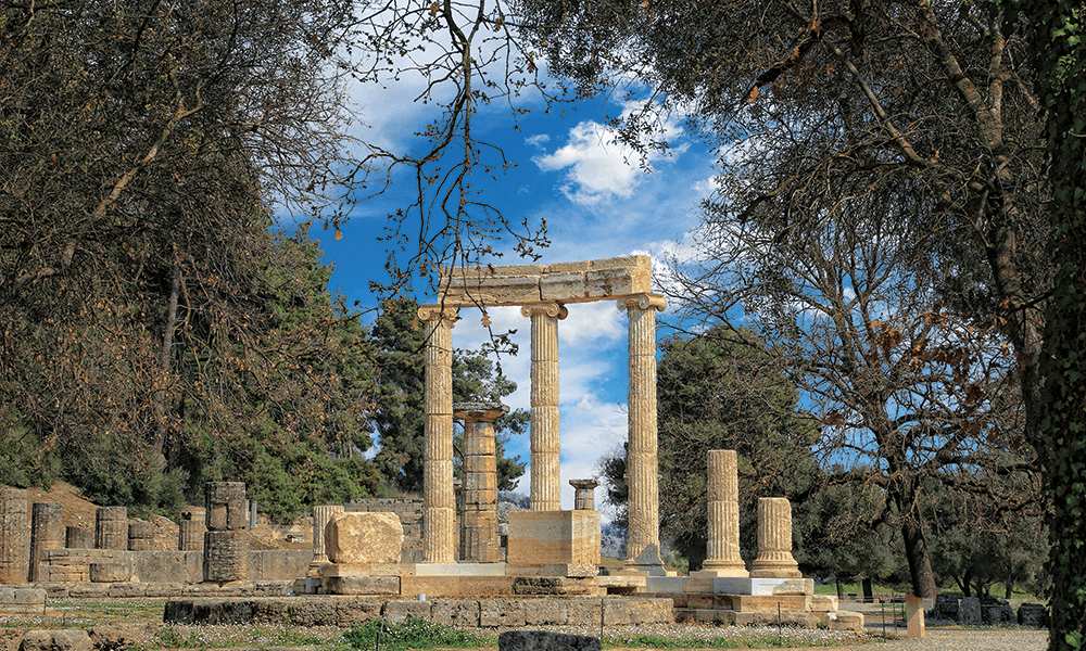 Antika Olympia växte till att bli den mest berömda och den mest heliga platsen i det antika Grekland. En av anledningarna var att Olympia även blev födelseplatsen för de olympiska spelen, de viktigaste sportevenemangen i antiken. Vart fjärde år, från och med år 776 f.Kr., skulle alla greker över hela den kända världen förenas vid Olympia. Då avbröts alla pågående fientligheter så att alla kunde delta i dessa evenemang i sann sportanda.