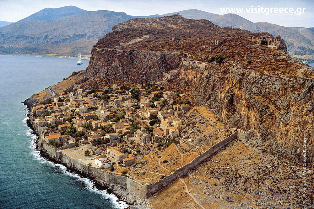 Monemvasia, skapat av bysantinerna på 600-talet, är en hisnande medeltida tornstad belägen på den sydöstra kusten av Peloponnesos. Passa på att utforska denna mystiska bosättning helt i sten, uppbyggd tryggt vid kanten av en bergvägg intill havet, och förlora dig i en unik medeltida atmosfär för en stund!